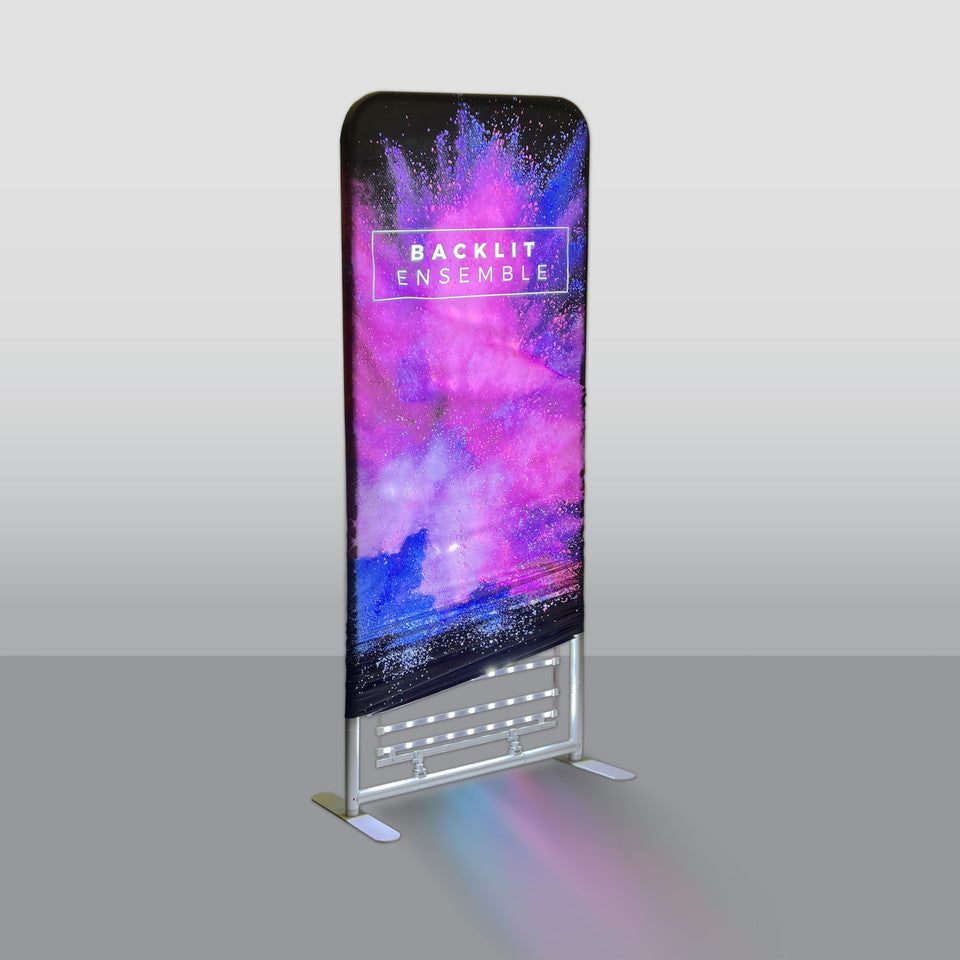 The Backlit Slimline Media Walls Graphic is a single-sided, wrinkle-resistant, dye-sublimation fabric print with total blockout fabric on back. The fabric graphic snuggly zips around the frame and lights, which provide tension for a smooth finish. A zipper on the lower back of the blockout fabric provides easy access to the lights and running power cables.