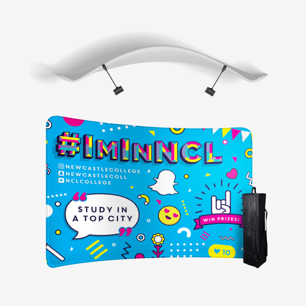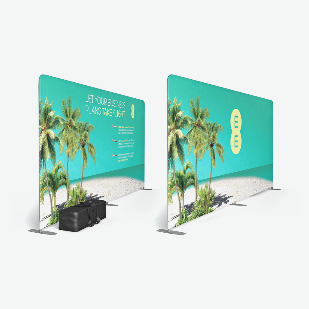 Our Slimline Display Stands offer a portable and hassle-free solution for  tradeshows and exhibitions. The display stands designed for easy assembly, they feature a stretch polyester fabric banner printed in vibrant full color using high-quality dye-sublimation inks. The banner is sewn into a fabric "pillowcase" that effortlessly slides over the tubular frame, creating a smooth, seamless display. Choose from multiple corner options, sizes, and single- or double-sided printing to achieve a professional look. Plus, you can update your message anytime by simply ordering a replacement fabric for