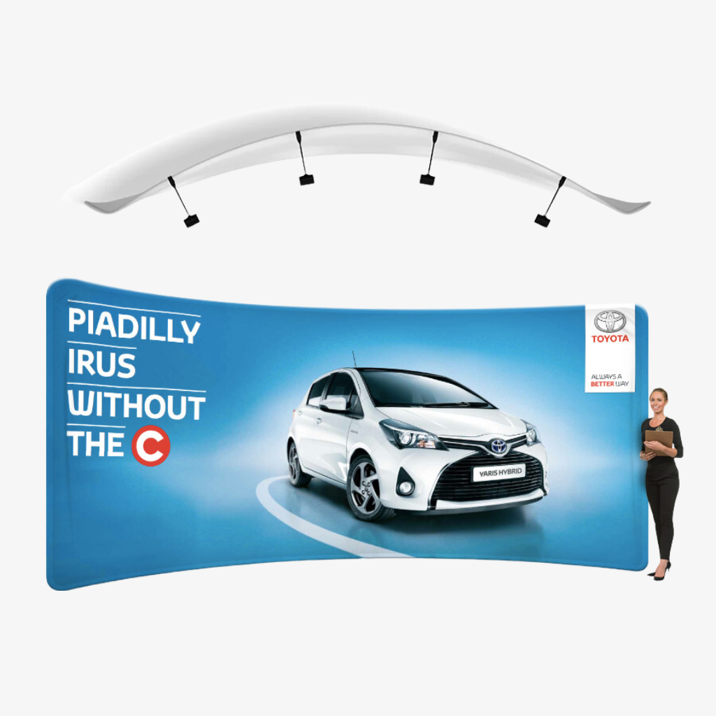 Our Slimline Display Stands offer a portable and hassle-free solution for  tradeshows and exhibitions. The display stands designed for easy assembly, they feature a stretch polyester fabric banner printed in vibrant full color using high-quality dye-sublimation inks. The banner is sewn into a fabric "pillowcase" that effortlessly slides over the tubular frame, creating a smooth, seamless display. Choose from multiple corner options, sizes, and single- or double-sided printing to achieve a professional look. Plus, you can update your message anytime by simply ordering a replacement fabric for