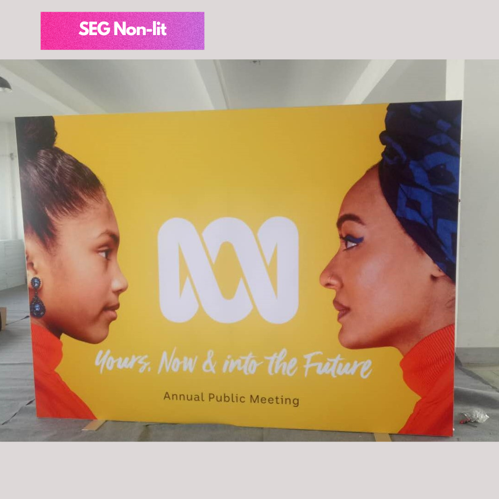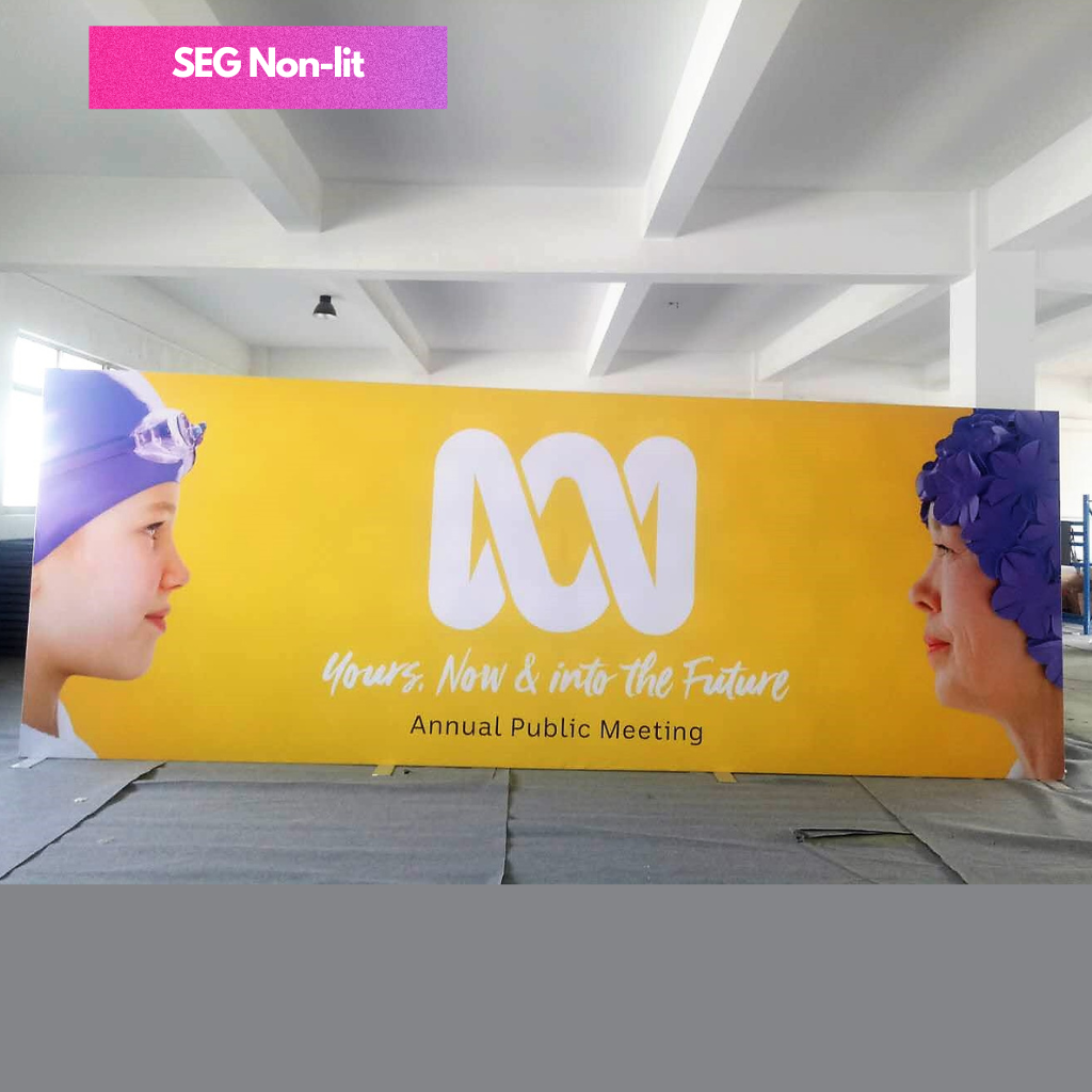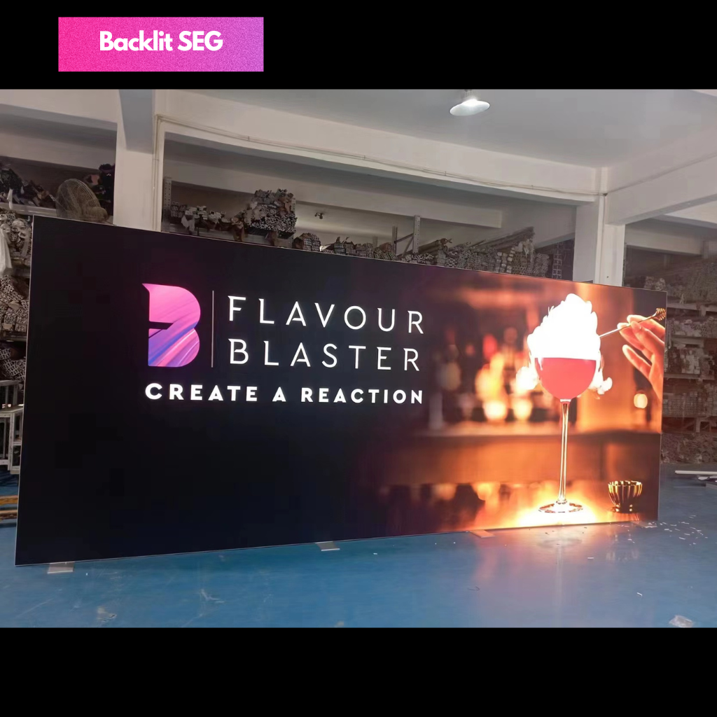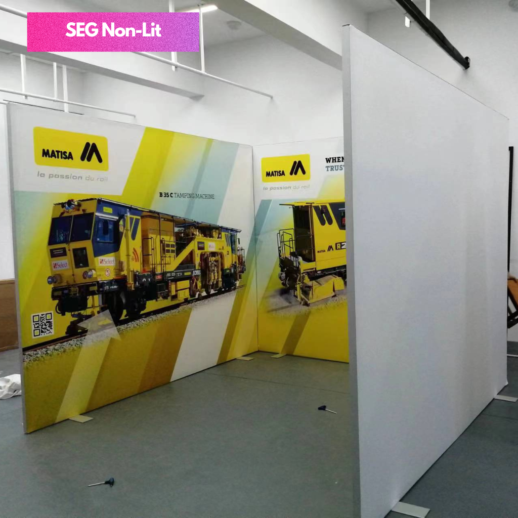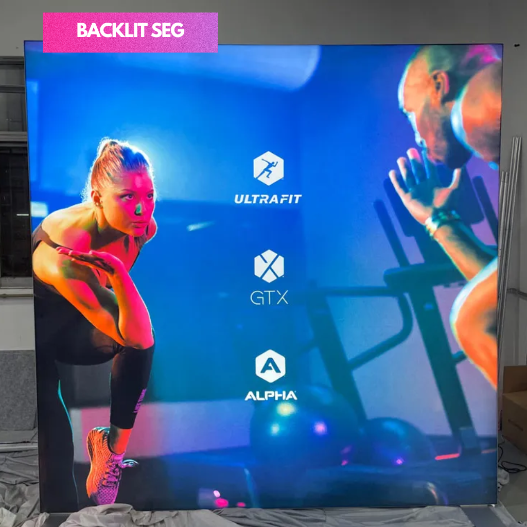 SEG Fabric Frame System also know as silicon edge graphics is the perfect blend of premium and versatility. The silicon edges of the fabric press into the frame making graphic installation and change out simple. Available in various width and height configurations as well as double sided display. Floor, ceiling and all mounted display is possible with the use of optional accessories.