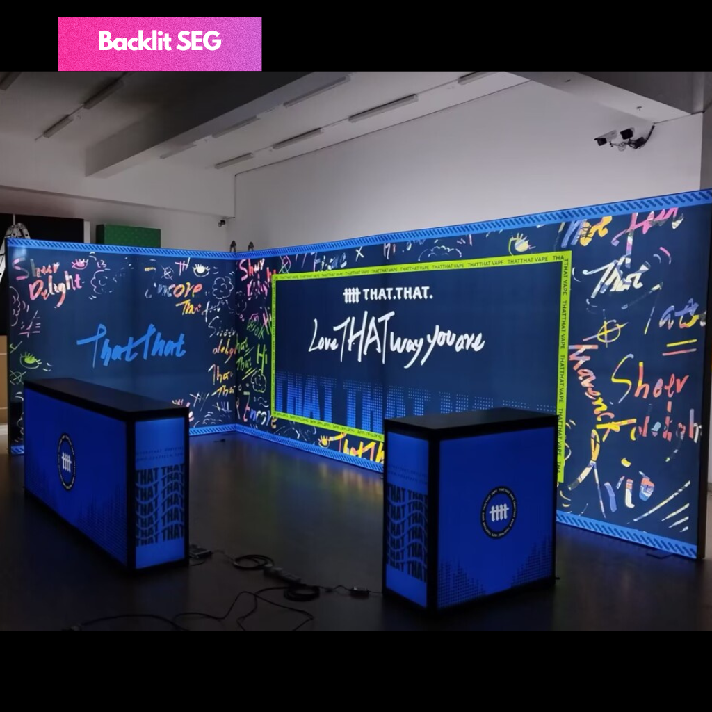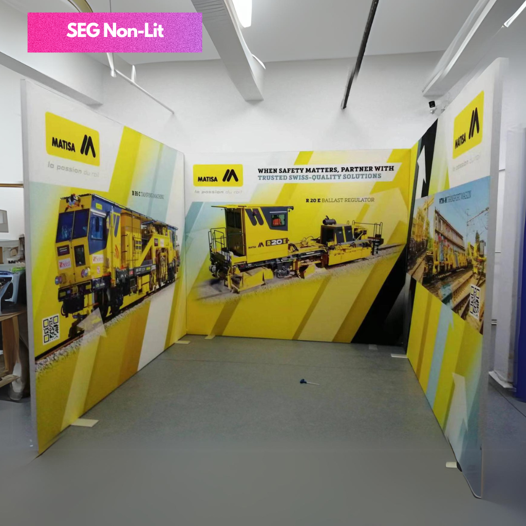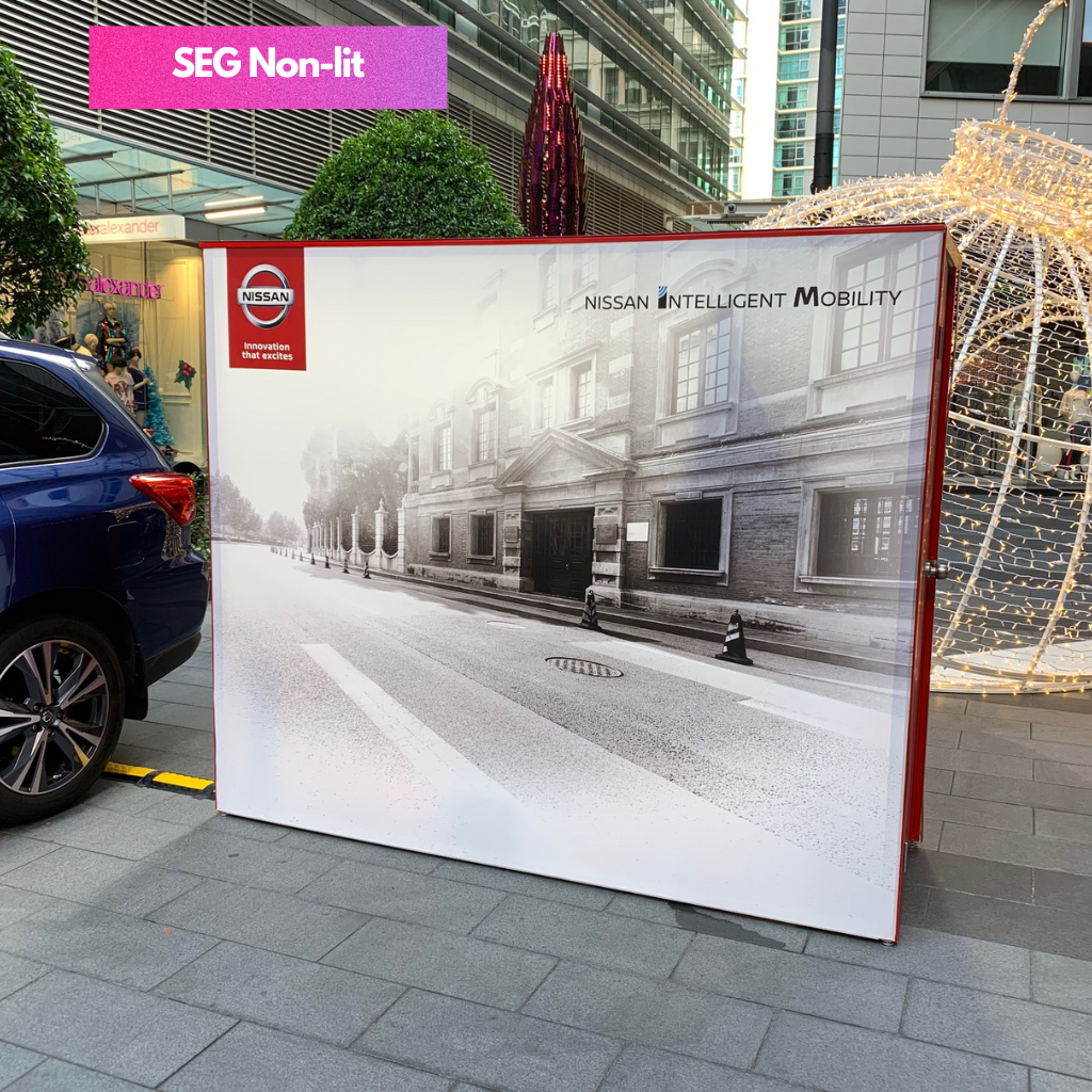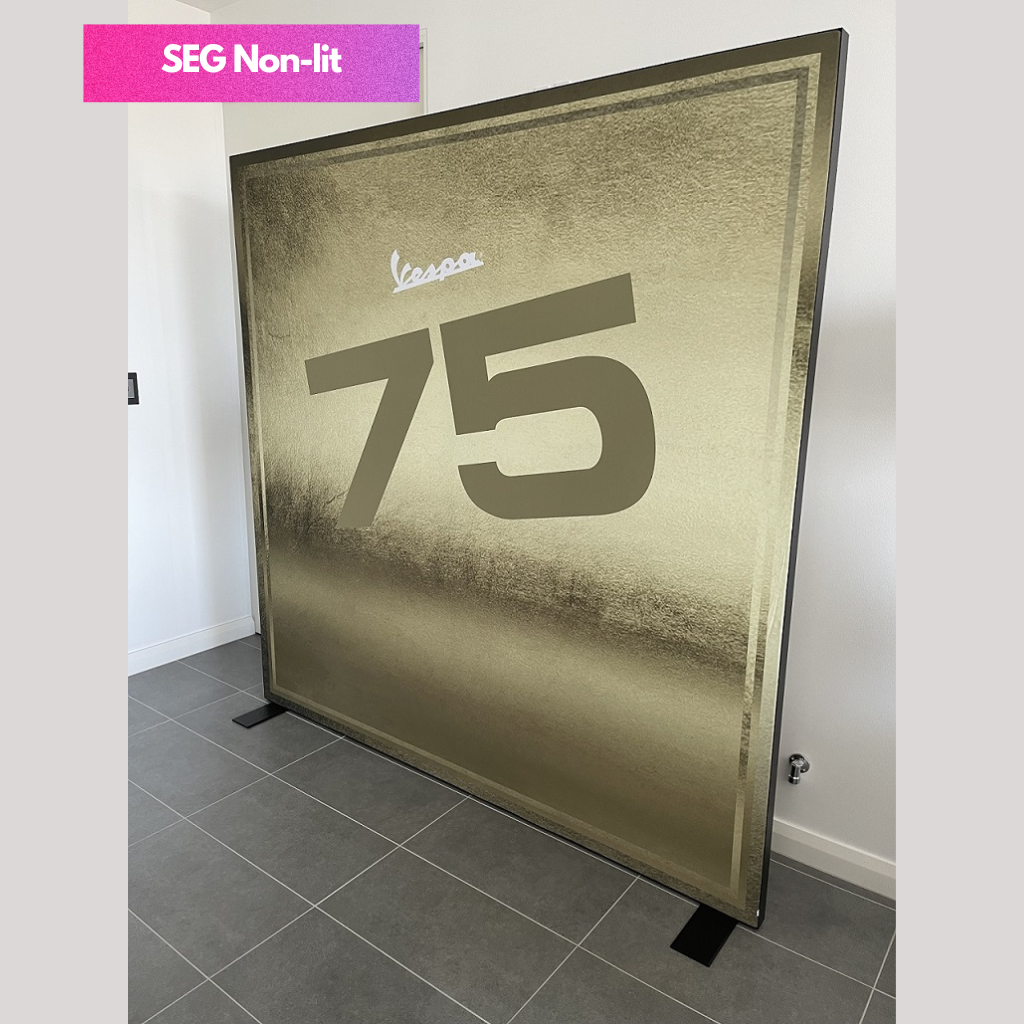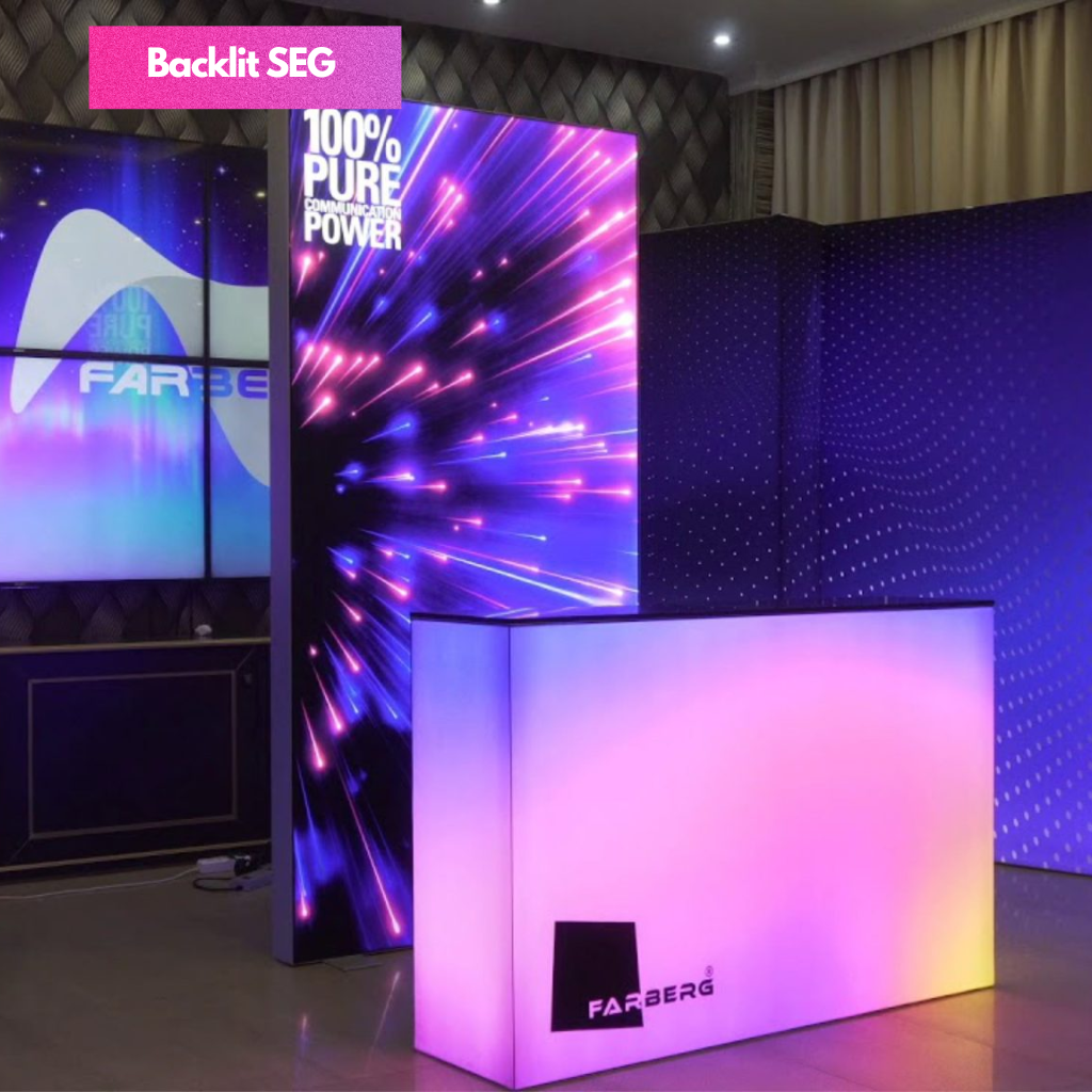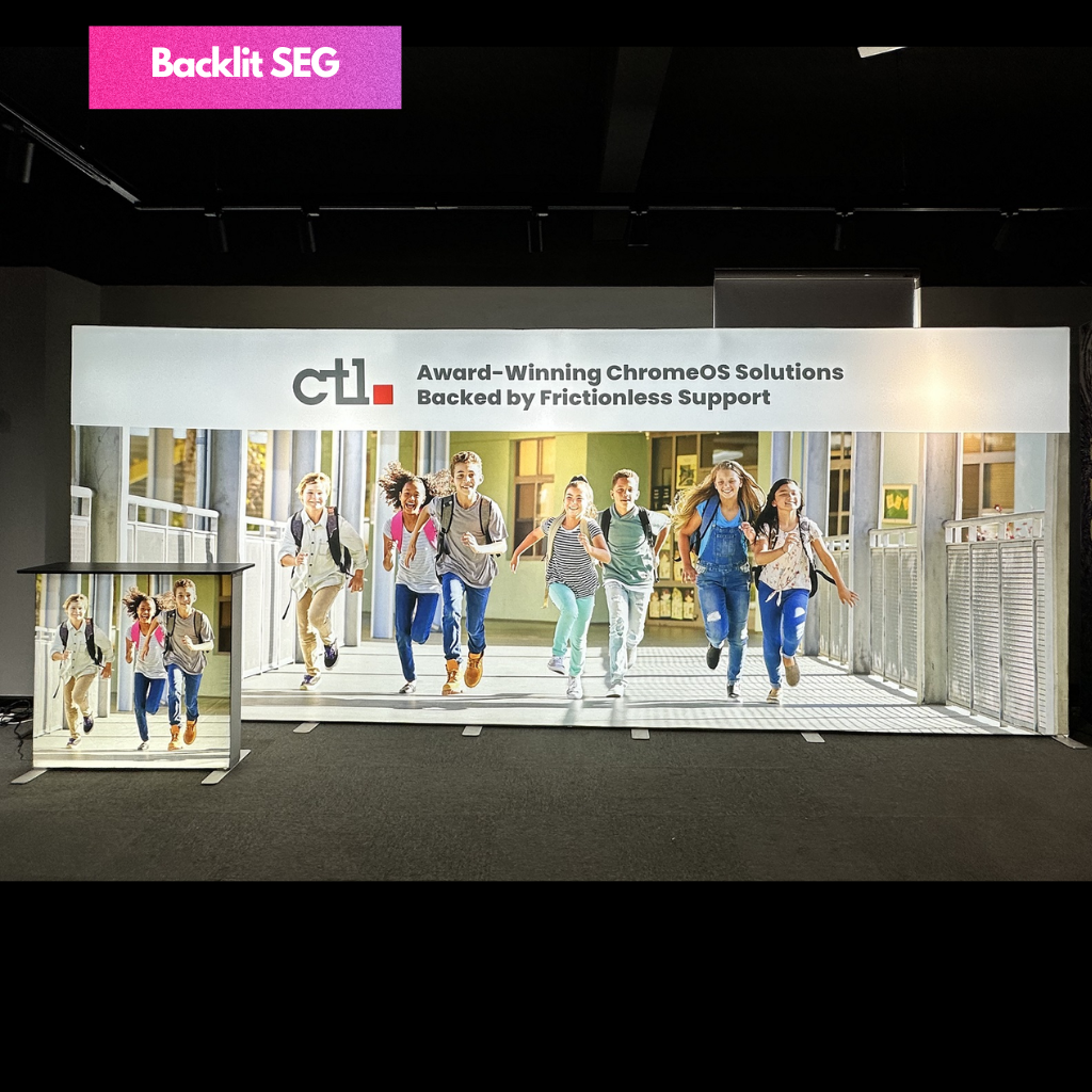 SEG Fabric Frame System also know as silicon edge graphics is the perfect blend of premium and versatility. The silicon edges of the fabric press into the frame making graphic installation and change out simple. Available in various width and height configurations as well as double sided display. Floor, ceiling and all mounted display is possible with the use of optional accessories.