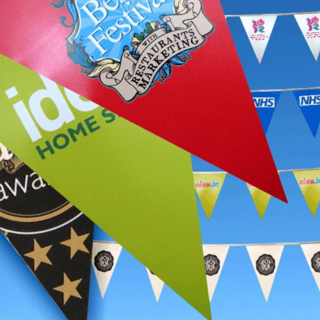 Custom Print Bunting Flags, perfect for indoor or outdoor use, with vibrant colours and durable construction made it perfect for product launches, trade shows, corporate events, marketing, promotional flagging event needs, and even large scale private or corporate parties. Minimum order of 20m (length).