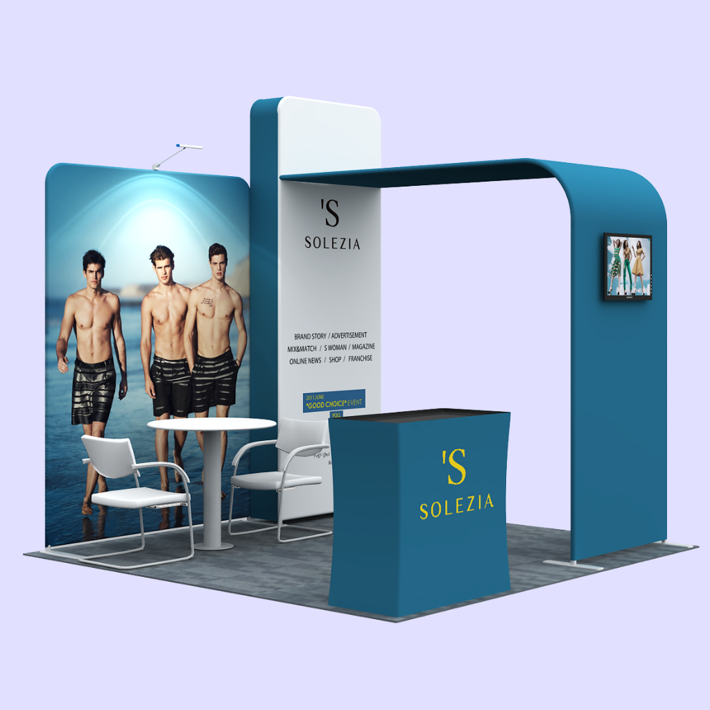 • 1 x Box Style Aluminium Snap-Tube frame with Tension Fabric Graphic Print 1mW x 3mH x 0.4mD – Printed 3 side