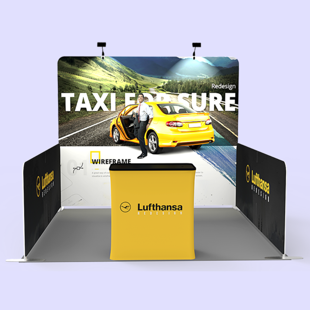 • Podium Counter Aluminium Snap-Tube frame with Tension Fabric Graphic Print 60cmW x 100cmH x 40cmD – Printed 1 side