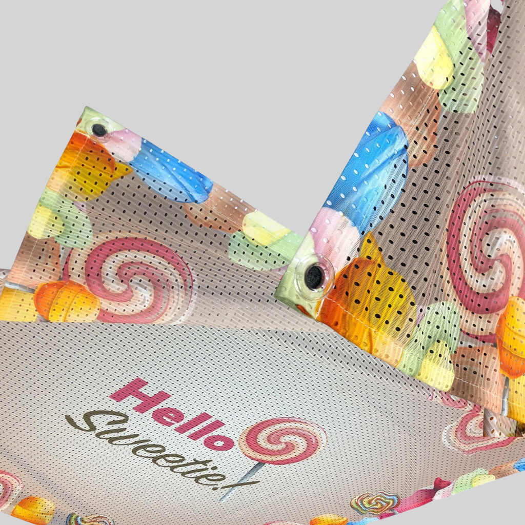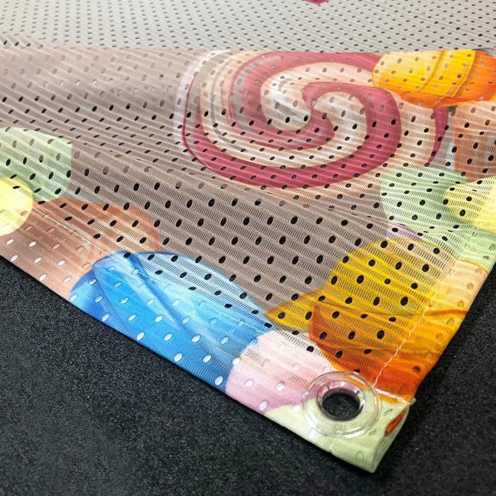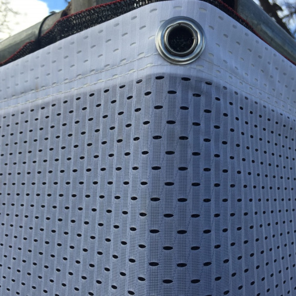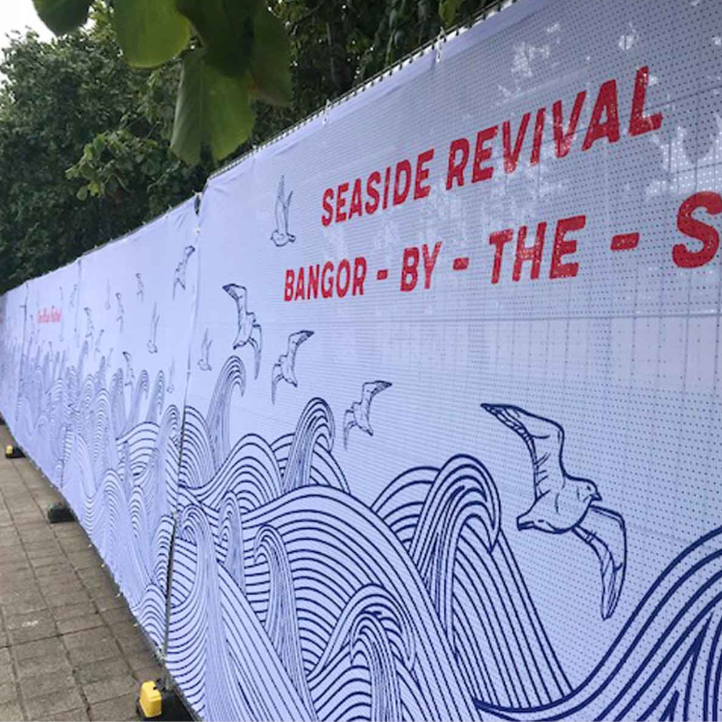 Our Fabric Mesh Banners are perfect for advertising your products or brand outdoors on construction site fences as the Mesh Fabric Material lets the air through so to reduce the wind pressure on your fence. Fabric Mesh Banners can also be used at events and exhibitions as a lightweight transparent backdrop. They are easily folded and packed into your suitcase making them an ideal travel companion!