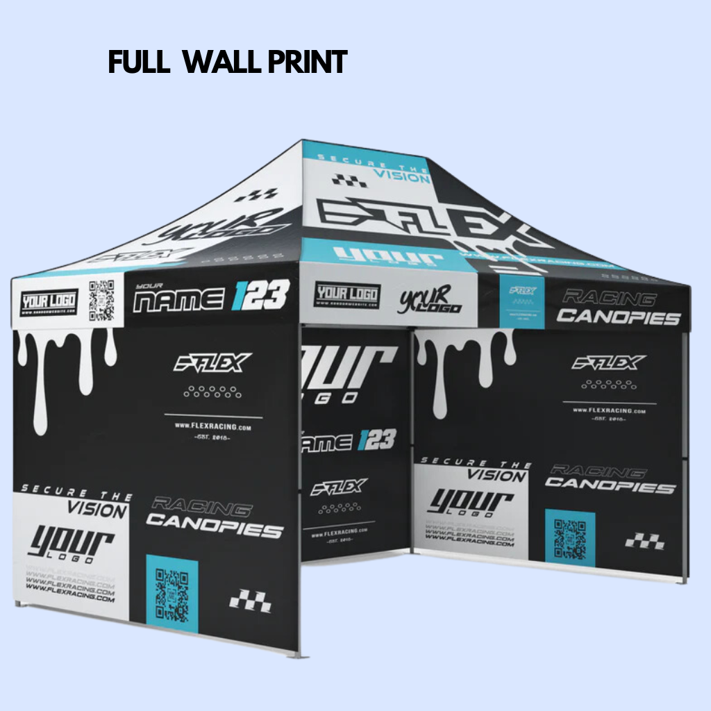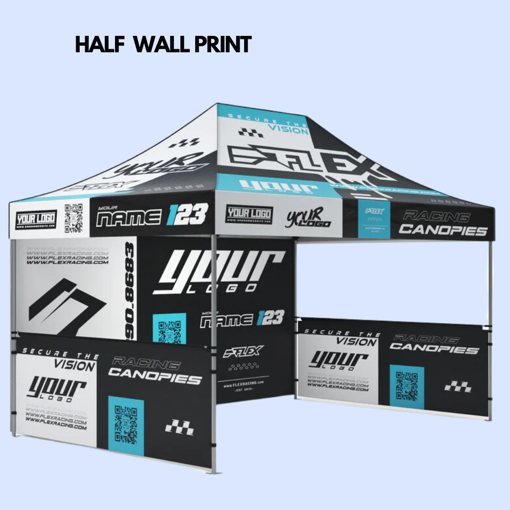Optional full size or half size back and side walls with single or double sided full colour custom print available.