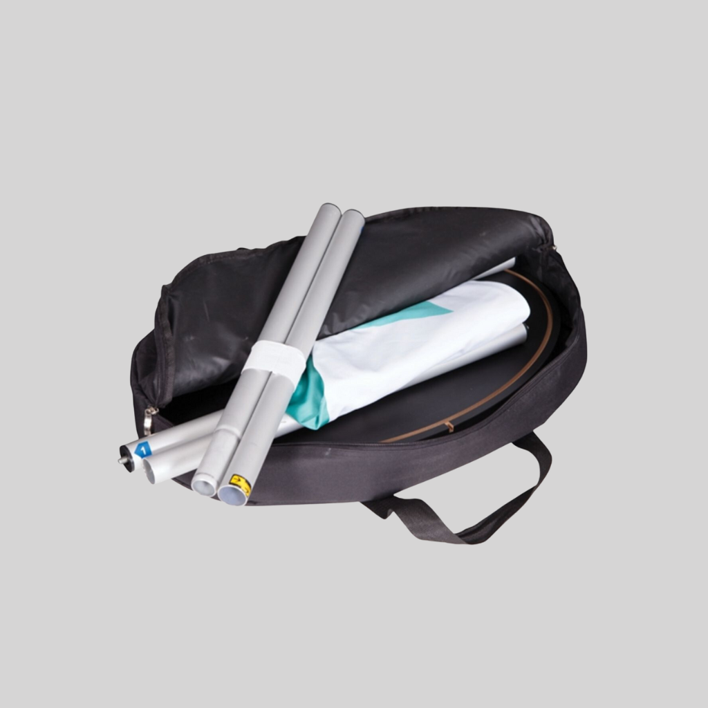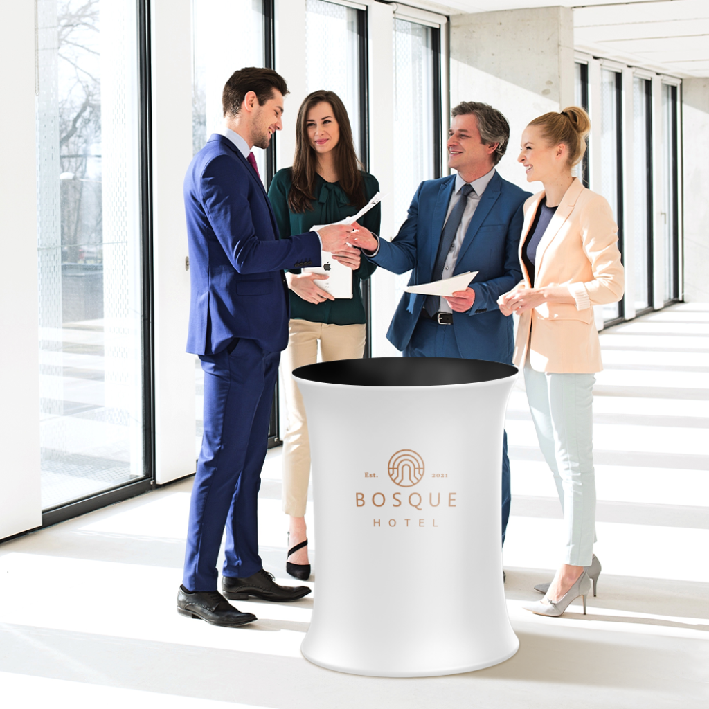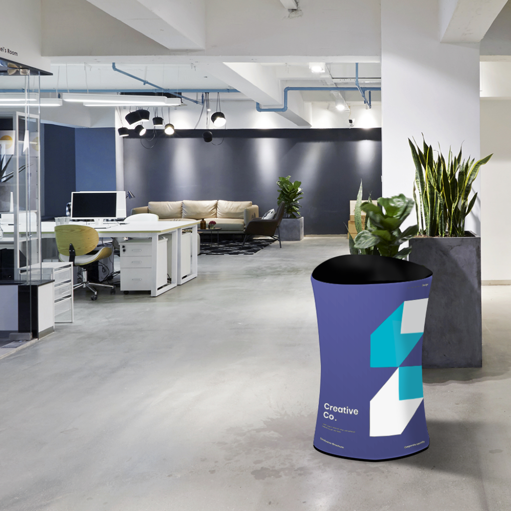 Stretch Fabric Display Counters consist of a counter-top, base and lightweight tubular aluminium poles. A printed fabric cover is included.