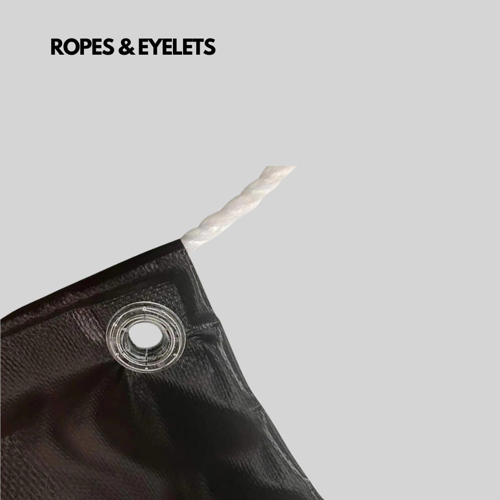 - Finishing methods include: Ropes and eyelets, hemmed edges and eyelets or rod pockets